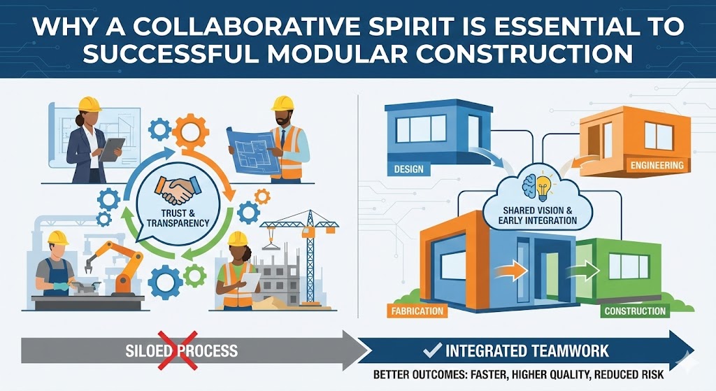 Modular construction is often discussed in terms of speed, efficiency, and quality control. While these advantages are real, they do not come from the manufacturing process alone. At its core, modular construction succeeds or fails based on one critical factor: collaboration.